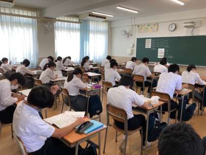 テスト前の自習の時間です。みんな熱心に勉強しています。すごい集中力です。