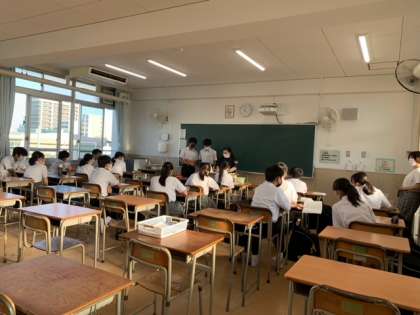保健委員会では、後期保健委員の委員長と副委員長の選出、保健委員会の仕事の確認を行いました。緊急事態宣言は解除されましたが、感染症対策に油断は禁物だということで、目標は「K 危機はまだそこにある Y 油断せず K 感染症予防」と目標を立て、石けん・ハンドソープ・アルコールがなくならないよう目を光らせ、補充を行います。そして毎日1時間に1回教室の喚起を実施しますので、ご協力をお願いいたします。