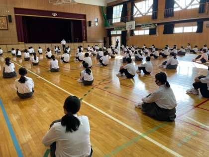 1年生の学年集会です。今日の話は勉強でもスポーツでも基礎・基本が大切ということでした。