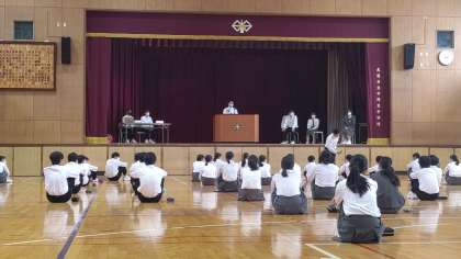 各クラス予選を勝ち抜いた代表6名の生徒が発表します。