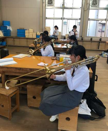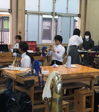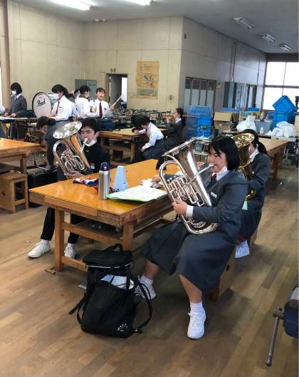 オープニングセレモニー、全校生徒全力の集団演技を演奏でサポートする吹奏楽部員、一日アナウンスでサポートする放送部員。
