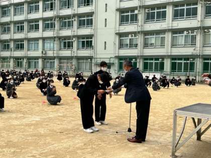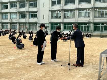 先日行われたハンドボール大阪府大会の表彰伝達が行われました。