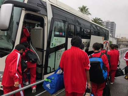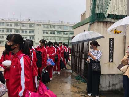 小雨の中たくさんのお見送りありがとうございます。まもなく出発します。
