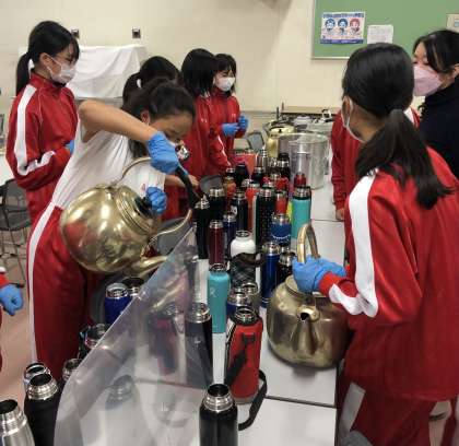 係生徒は手袋しての作業、衛生面での完成度も高い2年生です。
