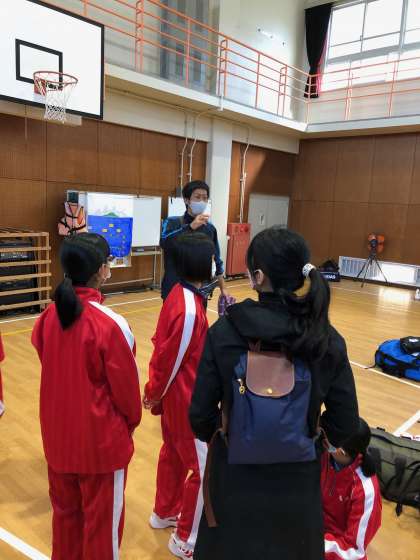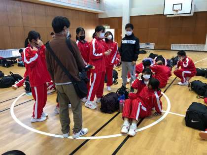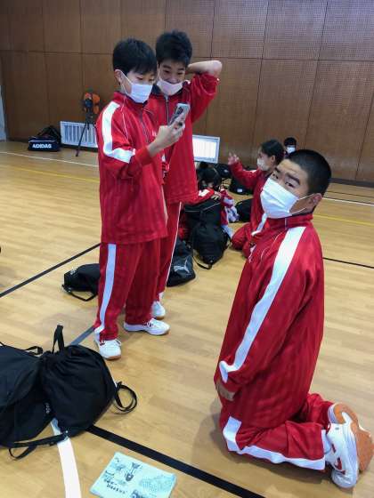 体育館で待機中