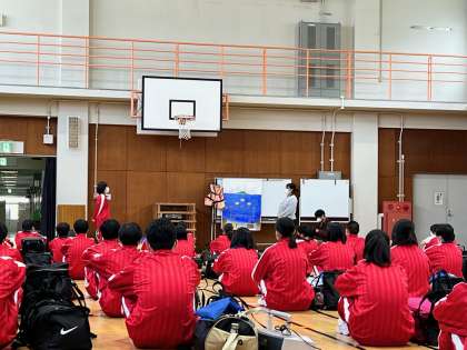 施設のスタッフの人に感謝の気持ちを伝えています。