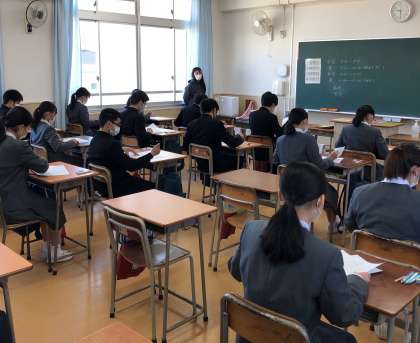 英語科テストが始まりました。生徒たちはいつも真剣に問題に向き合っています。