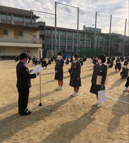 社会科・理科賞状伝達(納税貯蓄連合会から伝達に来ていただきました。ありがとうございます。)、生徒会からの連絡と人とのつながりの大切さ・心豊かさについて話がありました。