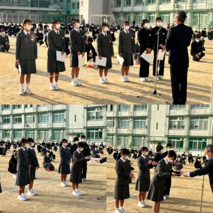本日の全校集会で大阪市理科教育研究発表会に出展された作品の賞状伝達を行いました。優秀な作品が揃い、その中の1つは大阪市代表として、大阪府学生科学賞に出展されました。