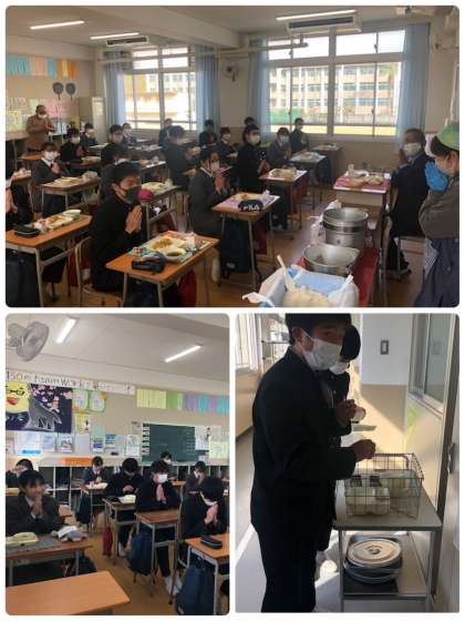 3年生1組のみんな・担任先生方と一緒に給食です。