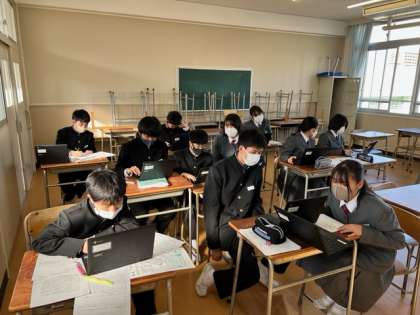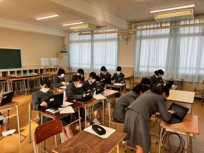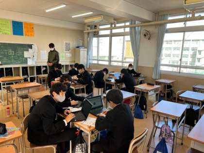 職業講話で聞いた内容を、パワーポイントを使ったプレゼンテーション作りを行なっています。