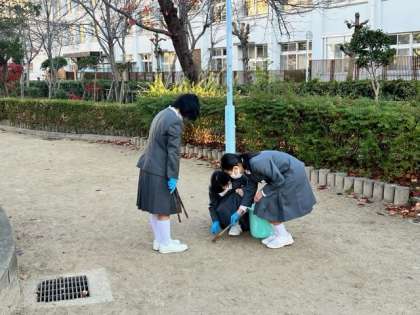 今日もたくさんの生徒が朝から公園の清掃をしてくれました!