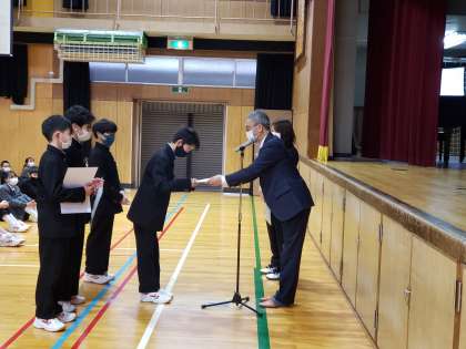 バドミントン部の表彰伝達も行いました。