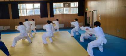寒さに負けず、一年生は柔道を三年生はバスケットボールをしています!