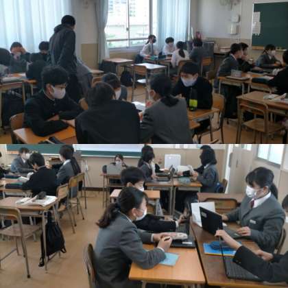 延期になっていた校内研究授業を行いました。写真は1年生の数学の様子です。