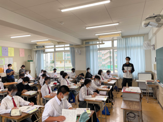 本日は3年生、1組は社会科、2組は家庭科、3組は理科の研究授業を行っています。