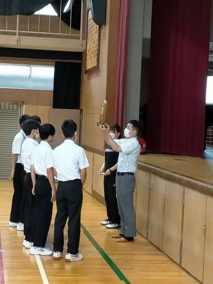 5月3日、6月4日に行われた大阪市春季総合体育大会個人戦男子ダブルスの部準優勝と男子団体の部優勝の賞状伝達が行われました!