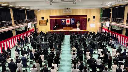 市岡東中学校 第51期生入学式が行われました。 新入生のみなさん、ご入学おめでとうございます。