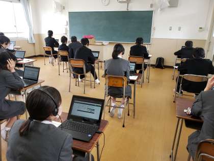 国語・数学・英語の3教科があり、加えて英語は学習者用端末を用いて「話すこと」の問題にも取り組みました。