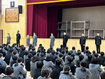 今日の全校集会では、先週行われた生徒委員会の活動報告を行いました。
