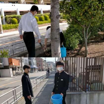 朝からボランティアの生徒が学校周辺をきれいにしてくれています。 キレイな空間は気持ちがいいですね!
