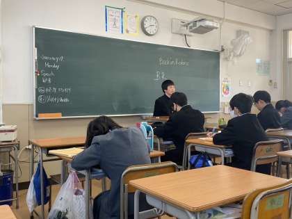 冬休みの宿題で書いた英文日記を発表しました。これまでの授業で、友だちと読み合ったり、詳しい情報を足したり、班で発表練習をしたりして、ブラッシュアップを繰り返してきました。