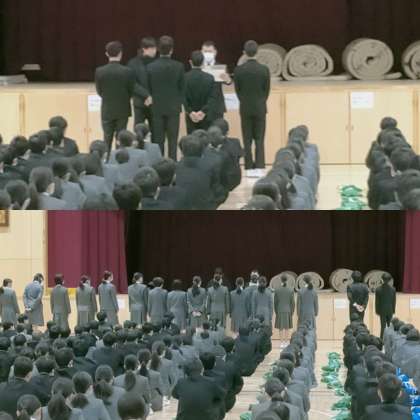 本日の全校集会で、軟式野球の港区選抜に選ばれた生徒と大阪市立中学校造形展に出展された生徒の表彰が行われました。