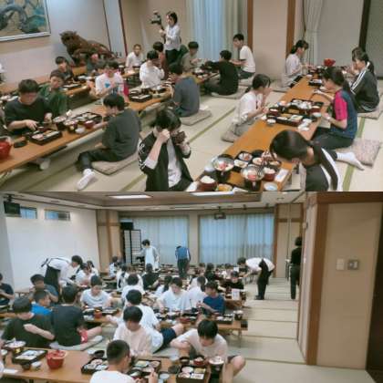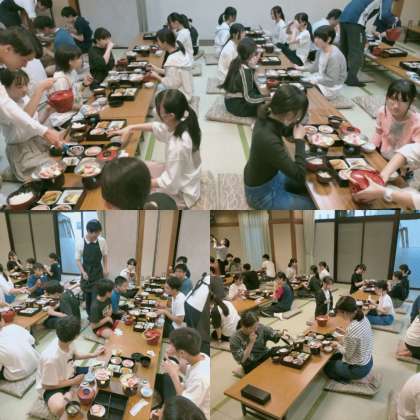 夕食です!みんな美味しそうに食べています!