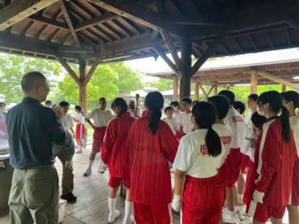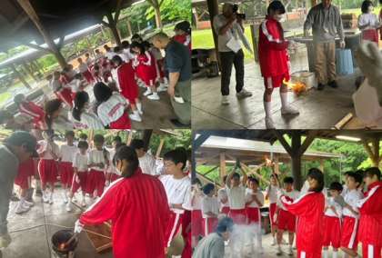 火おこし体験を通して力を合わせる大切さについて学んでいます。