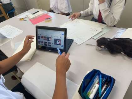 デザイン画はそれぞれの生徒が興味ある内容で、端末で調べてデザイン画のイメージを考えている生徒もいました。