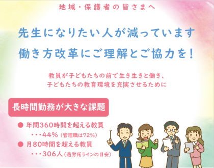 教員が子どもたちの前で生き生きと働き、子どもたちの教育環境を充実させるために、ご理解とご協力をお願いします。