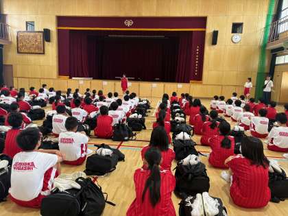 一泊移住 出発式 公開日 2025/05/27 更新日 2025/05/27 1年生 8時25分に1年生は体育館に集合し、出発式を行っています。 このあと9時に中学校をでて、弁天町から電車に乗ります。 いいね(0)