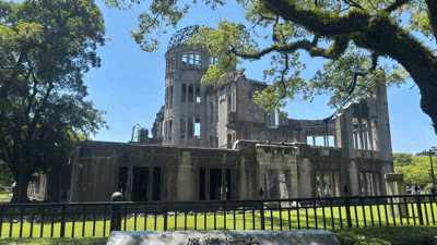 As scheduled, we arrived at the Atomic Bomb Dome. We will hold a peace ceremony from now on.