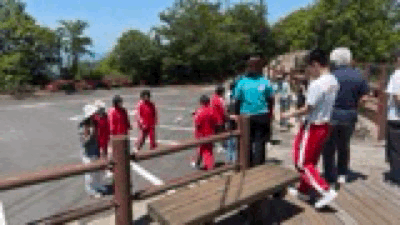 At the top of Mt. Kannomine, "Hi, cheese!"