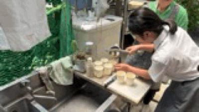 At a private accommodation, the students were just having lunch. The teacher who disturbed me also served freshly squeezed juice. Thank you.
