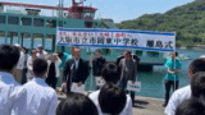 フェリー乗り場にて、離島式を行いました。たくさんの思い出がいっぱいできました。