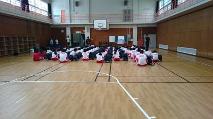 入所式の様子です。号令で、整列しなくても自分たちできれいに並べています。