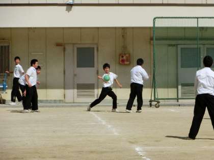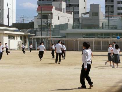 昼休み(12:55〜13:15)には毎日約100名の生徒が運動場で元気いっぱい体を動かします。
