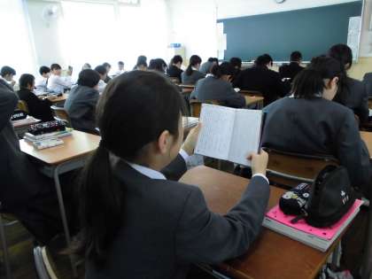 1年生は学力向上と心を落ち着かせるため朝学活の際、読書を行います。