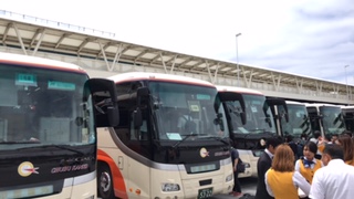 天候はくもり。あたたかくなってきました。バスで平和資料館に向かいます。