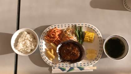 夕食です。和風ハンバーグがメインの食事です。