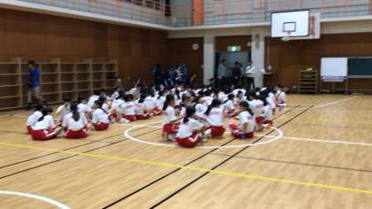 レクレーション大会が終わり、メロンパンを食べ、ポカリスエットを飲んでいます。