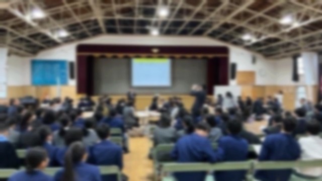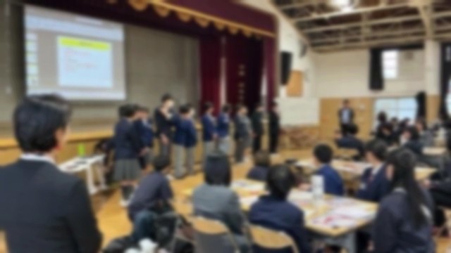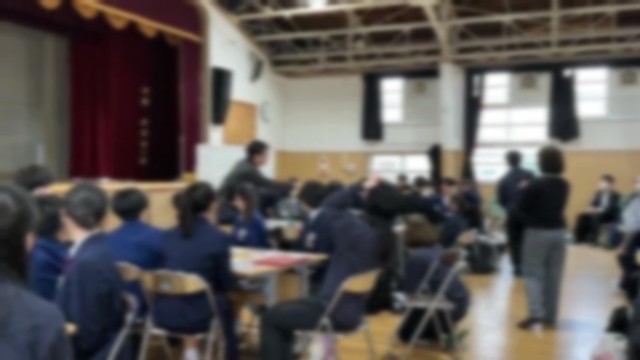 昨日、市岡中学校に、港区内5つの中学校の代表生徒、保護者、そして教職員が集まりました。
