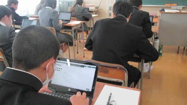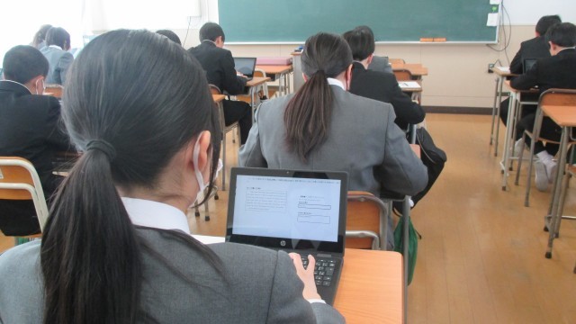 紙を用いることなく端末に載っている英文を読んだり、答えの英文を端末に入力したりして問題に取り組んでいます。