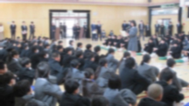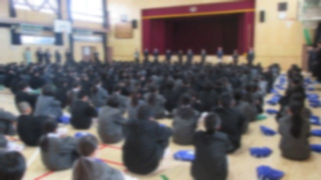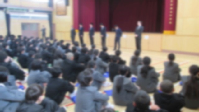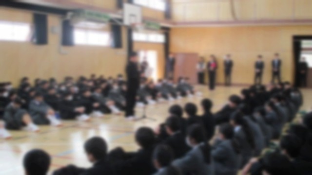 昨日、市岡中学校に、港区内5つの中学校の代表生徒、保護者、そして教職員が集まりました。