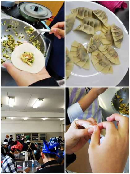 冬休みの宿題で餃子づくりをしていたおかげで上手に包めていました。
