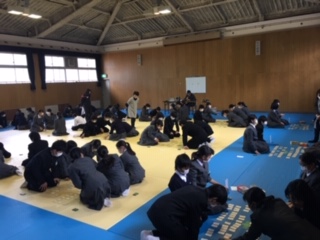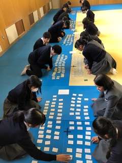百人一首大会をしている様子です。 第一回戦から集中しています。