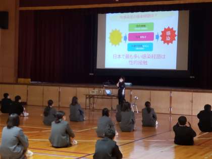 性感染症の基礎的なことや広がり方、予防方法などについて、一部実演も交えながらお話ししていただきました。
