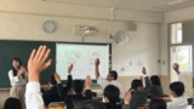 It was a class with various episodes about the importance of food. It was impressive to see the students happily immersing in the teacher's story. -