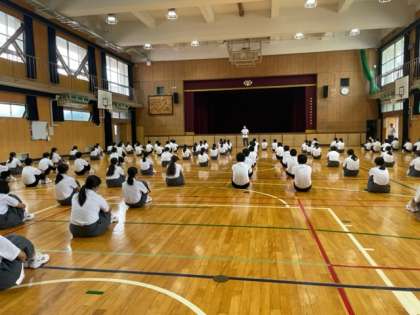 全校集会で先週に行われた体育大会の様子のビデオを観ました!